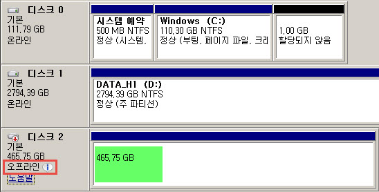 디스크가 오프라인 상태인 경우