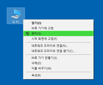 ▲ 내컴퓨터 - 관리 클릭후 컴퓨터관리로 들어간다.