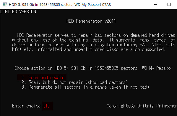 배드섹터 치료 프로그램도 여러 종류가 있으나 대표적인 프로그램이 DRevitalize, hddregenerator 이다.