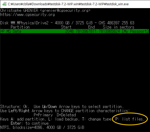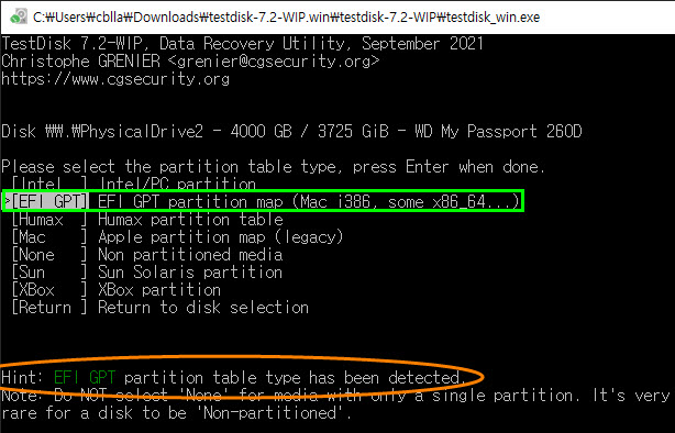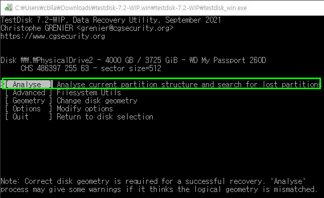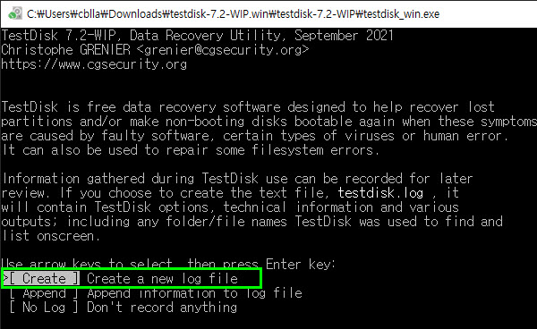 프로그램 다운로드: https://www.cgsecurity.org/wiki/TestDisk_Download