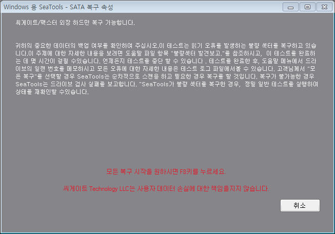 배드섹터 치료가 안될경우 로우레벨포맷을 권장한다. (※로우레벨포맷시 모든 데이터가 복구불가능하게 지워짐)