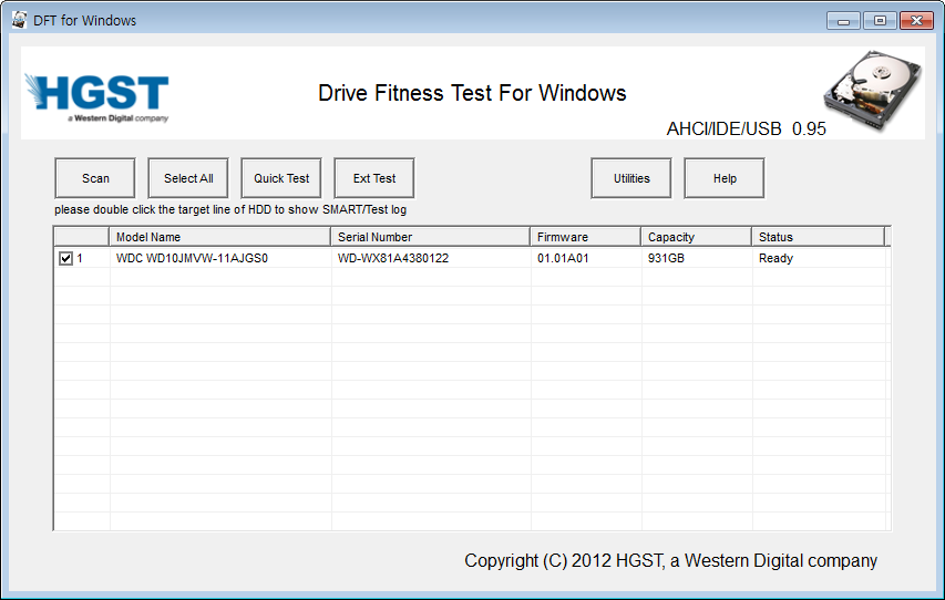 HGST WinDFT: 사이트 다운로드 종료. 직접 첨부함.